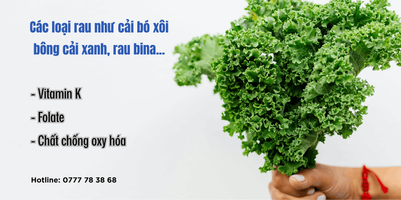Các loại rau như cải bó xôi, bông cải xanh, rau bina chứa nhiều: