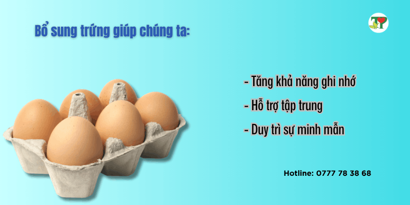 Trứng chứa choline, một dưỡng chất quan trọng giúp sản xuất acetylcholine – chất dẫn truyền thần kinh liên quan đến trí nhớ.