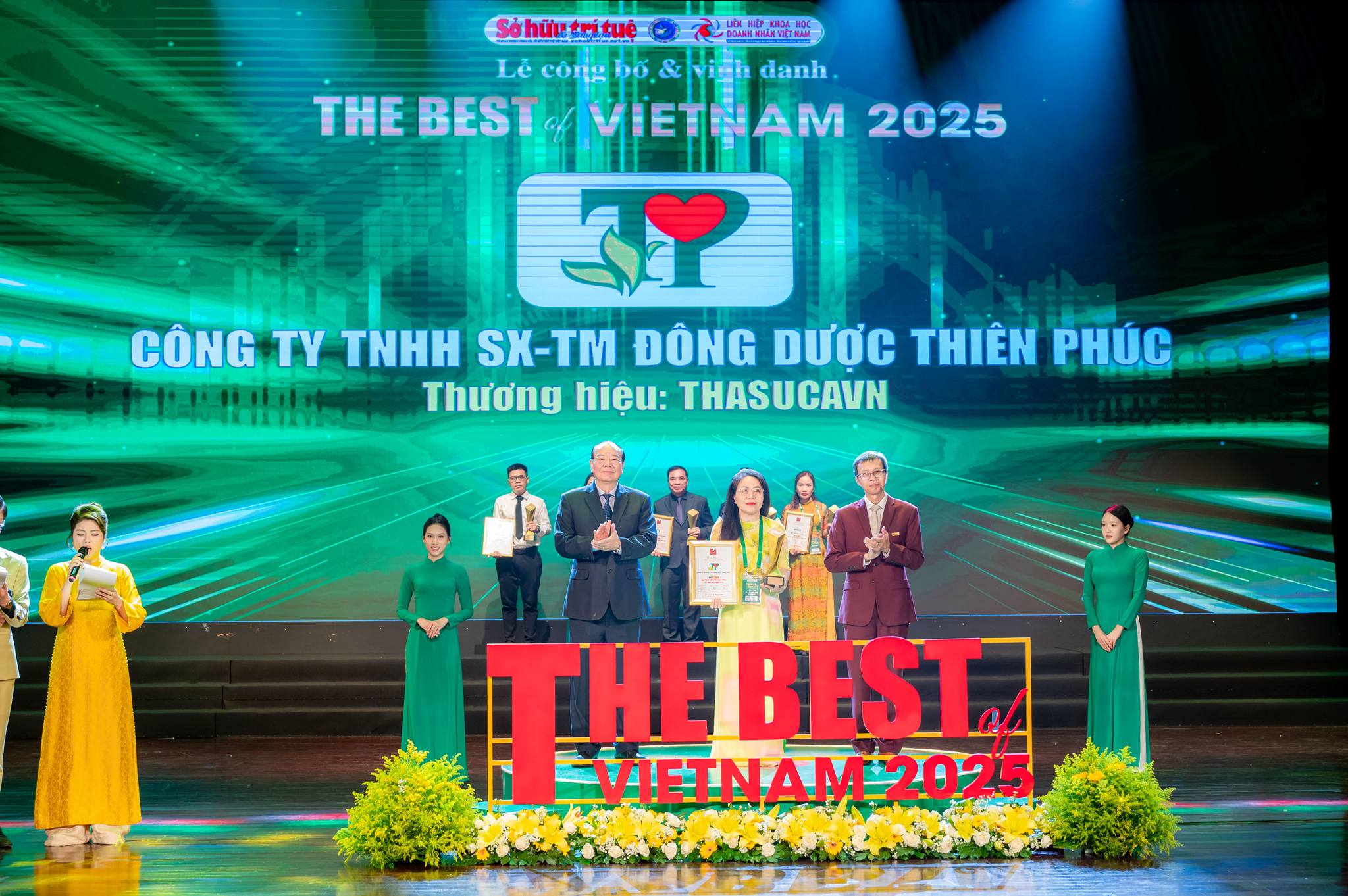 Thasucavn Extra – sản phẩm hỗ trợ chức năng thận đến từ Công ty TNHH SX – TM Đông Dược Thiên Phúc – đã vinh dự nhận giải thưởng THE BEST OF VIETNAM 2025, khẳng định vị thế là một trong những thương hiệu được tin dùng hàng đầu Việt Nam. 👉 Giải thưởng do Tạp chí Sở hữu trí tuệ và Sáng tạo, Viện Chất lượng Việt Nam, Liên hiệp Khoa học & Doanh nhân Việt Nam phối hợp tổ chức. 👉 Đánh giá dựa trên các tiêu chí: chất lượng sản phẩm, uy tín thương hiệu, sự tin dùng từ cộng đồng.