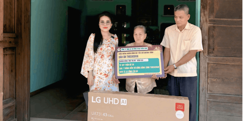 Để tri ân cho sự kiên trì và nghị lực đáng trân trọng ấy, Đông Dược Thiên Phúc đã trực tiếp đến thăm và trao tặng cô chiếc TIVI LG 43 INCH như một món quà ý nghĩa.
