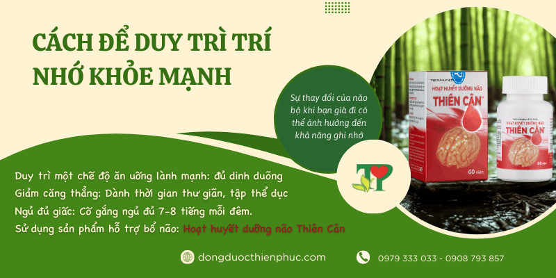 Các sản phẩm như Hoạt huyết dưỡng não Thiên Cân có thể hỗ trợ tuần hoàn máu não, ngăn ngừa lão hóa não bộ chúng ta, giúp cải thiện khả năng ghi nhớ và giảm các triệu chứng như chóng mặt, hoa mắt và mệt mỏi.