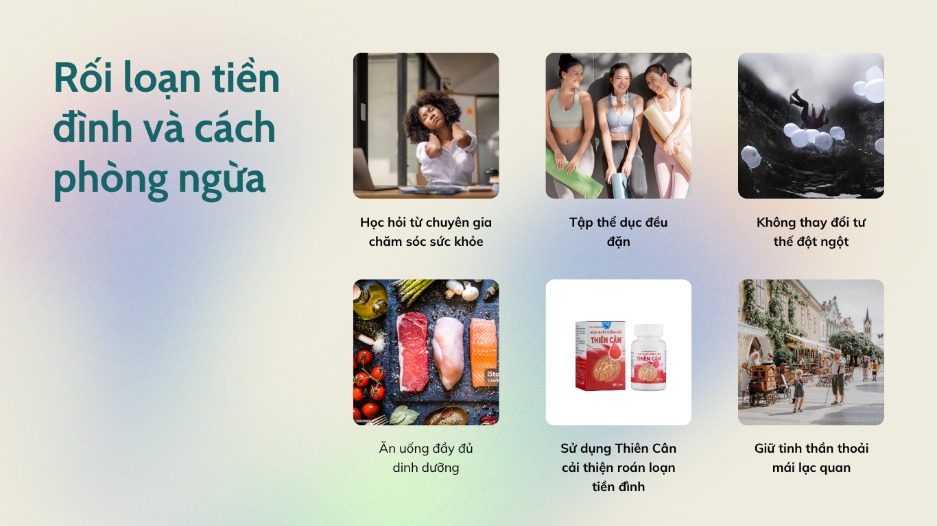 Bên cạnh đó, để hỗ trợ cải thiện tuần hoàn máu não, giảm triệu chứng hoa mắt, mất ngủ, chóng mặt, bạn có thể kết hợp sử dụng Hoạt Huyết Dưỡng Não Thiên Cân . Sản phẩm giúp chăm sóc trí não, tăng cường lưu thông máu và hỗ trợ giảm rối loạn tiền đình hiệu quả.