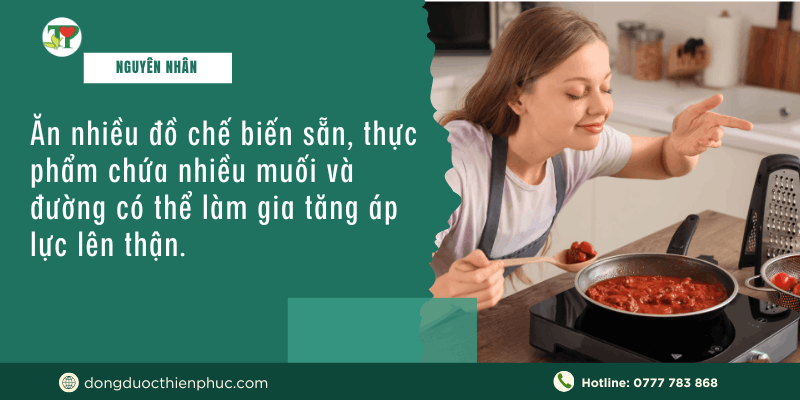 - Ăn nhiều đồ chế biến sẵn, thực phẩm chứa nhiều muối và đường có thể làm gia tăng áp lực lên thận. Việc ăn uống không hợp lý khiến thận phải làm việc cật lực để loại bỏ các chất độc hại.