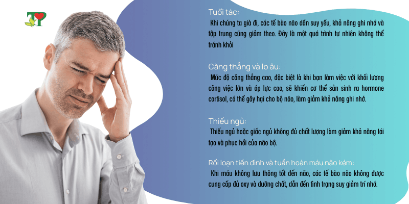 • Tuổi tác: Khi chúng ta già đi, các tế bào não dần suy yếu, khả năng ghi nhớ và tập trung cũng giảm theo. Đây là một quá trình tự nhiên không thể tránh khỏi.