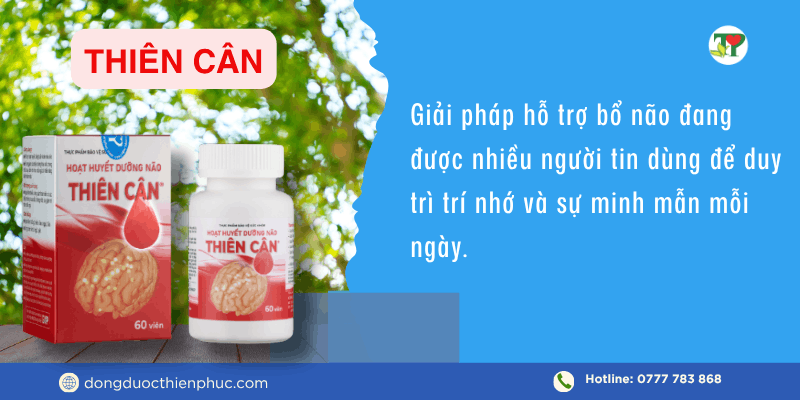 Hãy chủ động cải thiện từ hôm nay và tìm hiểu thêm về Hoạt Huyết Dưỡng Não Thiên Cân – giải pháp hỗ trợ bổ não đang được nhiều người tin dùng để duy trì trí nhớ và sự minh mẫn mỗi ngày.